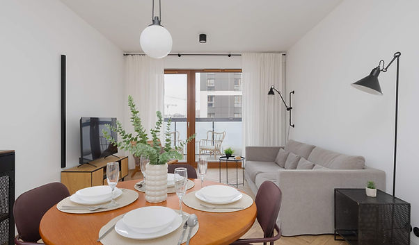 New property located in the business district, Wola, with numerous office buildings and commercial and gastronomic outlets, makes it an excellent accommodation for both business trips and tourist purposes. Extensive urban infrastructure, numerous bus, tram and metro stops allow comfortable movement around Warsaw. We offer Studios, one and two bedroom apartments.