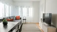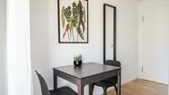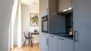 Technical highlights such as fast and reliable internet ensure smooth working and entertainment. A frame TV with an active subscription and a high-quality sound system set the stage for relaxed hours. Spacious built-in wardrobes provide ample storage, so you can feel completely at home in your business apartment.
