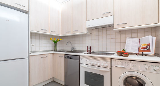 Designed with brand-new materials and a modern style, these apartments offer a comfortable and highly functional retreat, ideal for couples, small families, or business travelers looking to experience authentic Madrid life away from the downtown noise. A cozy living and dining room featuring a high-quality armchair, a Smart TV, and a comfortable double sofa bed. The bedroom has a comfortable double bed, a spacious built-in wardrobe, and a dedicated desk perfectly suited for remote work. SPLENDOM Ciudad Jardín apartments have a fully equipped, separate kitchen providing everything you need to easily prepare delicious meals at home.
