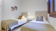 Our 4 gorgeous Bedroom apartments are located in a completely renovated building with an elevator and can accommodate up to nine guests. The spacious living room, carefully decorated and beautifully lit throughout the day thanks to its three impressive panoramic windows, features a comfortable sofa and a seating area with a single sofa bed.